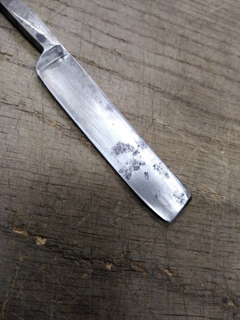 ***PLEASE LOOK AT ALL THE PICTURES AND ASK QUESTIONS BEFORE BIDDING*** This is a Vintage Antique The Bindley Hardware Co Warranted Straight Razor With Jimps Germany! *** The pictures are a substantial part of the description so please examine all the photos and contact me if you have any questions. We will be happy to save you shipping costs by picking this up at our shop. Thank You 021425- RK-13