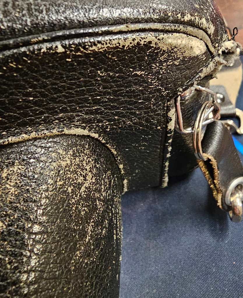 Leather has some wear & tear. Camera & accessories are all in good condition Item was not tested. Please look at pictures for condition.