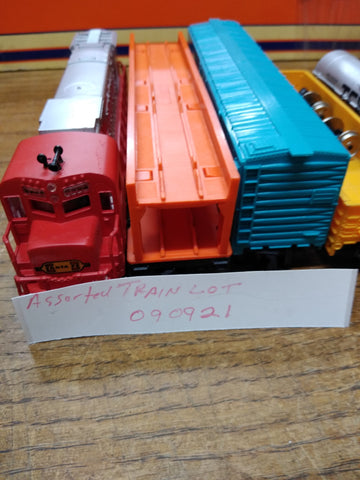 This is a Vintage assorted lot, the engine is untested. Some cars are in very good condition others need wheels, couplers, caboose has a crack. Lot is sold as is. Be sure to read all condition descriptions. The pictures are a substantial part of the description so please examine all the photos and contact me if you have any questions. We will be happy to save you shipping costs by picking this up at our shop. Thanks for looking.