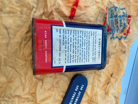 Vtg Atlas Polishing Cloth Can Tin Oi Gas auto 1960's Service Station Garage Cave great for the auto or oil can collector!!!
