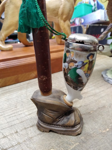 ***PLEASE LOOK AT ALL THE PICTURES AND ASK QUESTIONS BEFORE BUYING*** This is a Vintage Bavarian Hunting Style Tobacco Pipe Rain Cover Porcelain Bowl Cherry Wood Stem West Germany! *** The pictures are a substantial part of the description so please examine all the photos and contact me if you have any questions. We will be happy to save you shipping costs by picking this up at our shop. Thank You 041125- RK-08