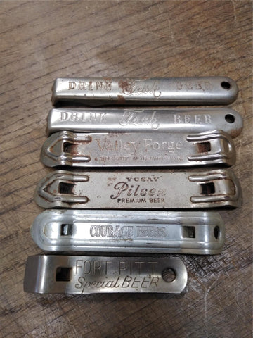 Vtg Beer Bottle Can Opener Lot YUSAY COURAGE TECH VALLEY FORGE FORT PITT Man Cav