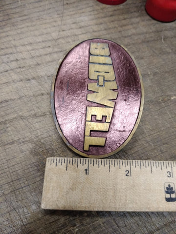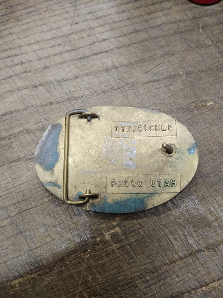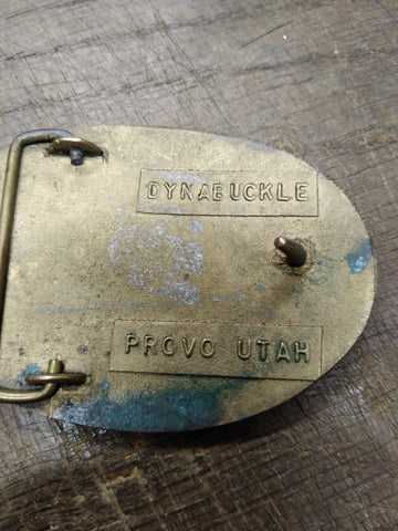 ***PLEASE LOOK AT ALL THE PICTURES AND ASK QUESTIONS BEFORE BUYING*** Vintage BIDWELL Brass Oval Belt Buckle Dynabuckle Provo Utah USA 3.25 x 2.25 inches