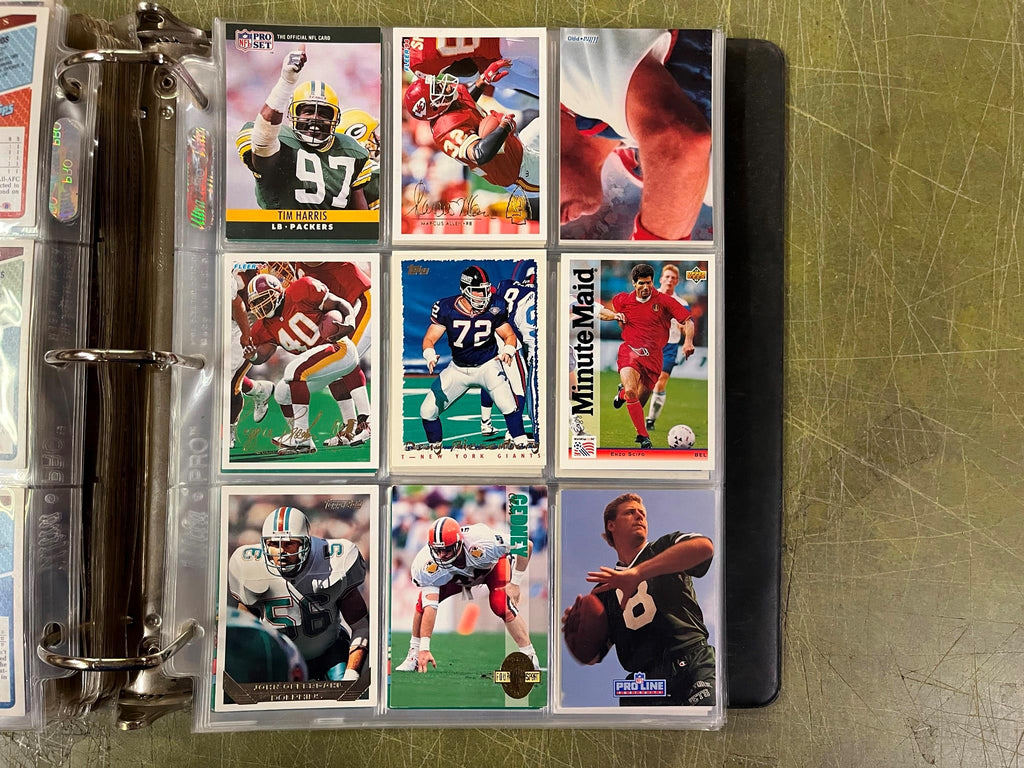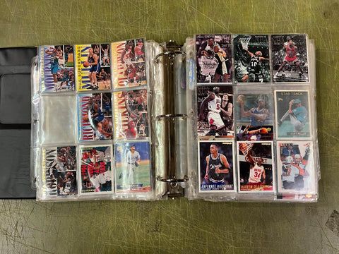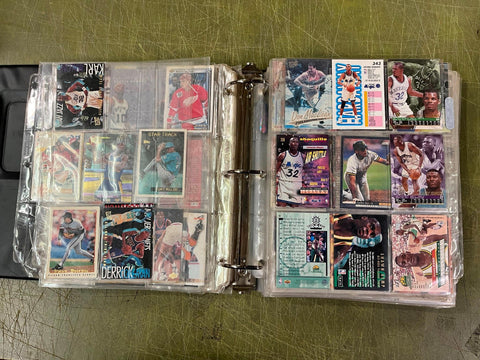 VTG Binder Full of 100+ 1990s NFL,NHL,NBA,MLB Trading Cards Larry Bird & more