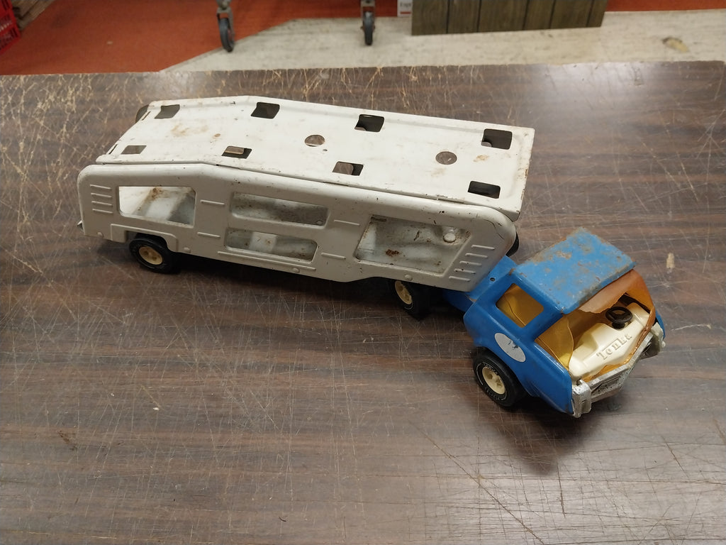 Vtg Blue Mini Tonka Cab Pressed Steel Truck Car Carrier 1960's Transport Japan