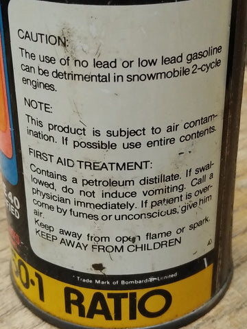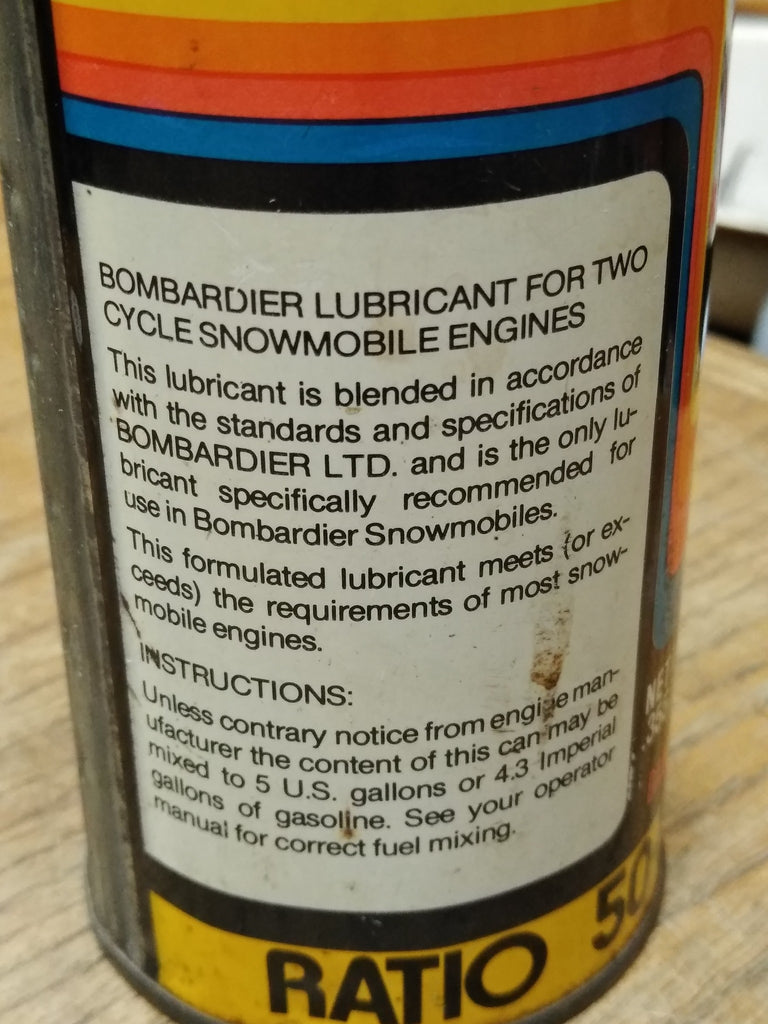 ***PLEASE LOOK AT ALL THE PICTURES AND ASK QUESTIONS BEFORE BUYING*** This is a Vintage Bombardier Snowmobile 50/1 SAE 40 Lubricant Tin Oil Can 12oz Full, Made in The USA, Good Condition! Please Check Condition Description for more information.