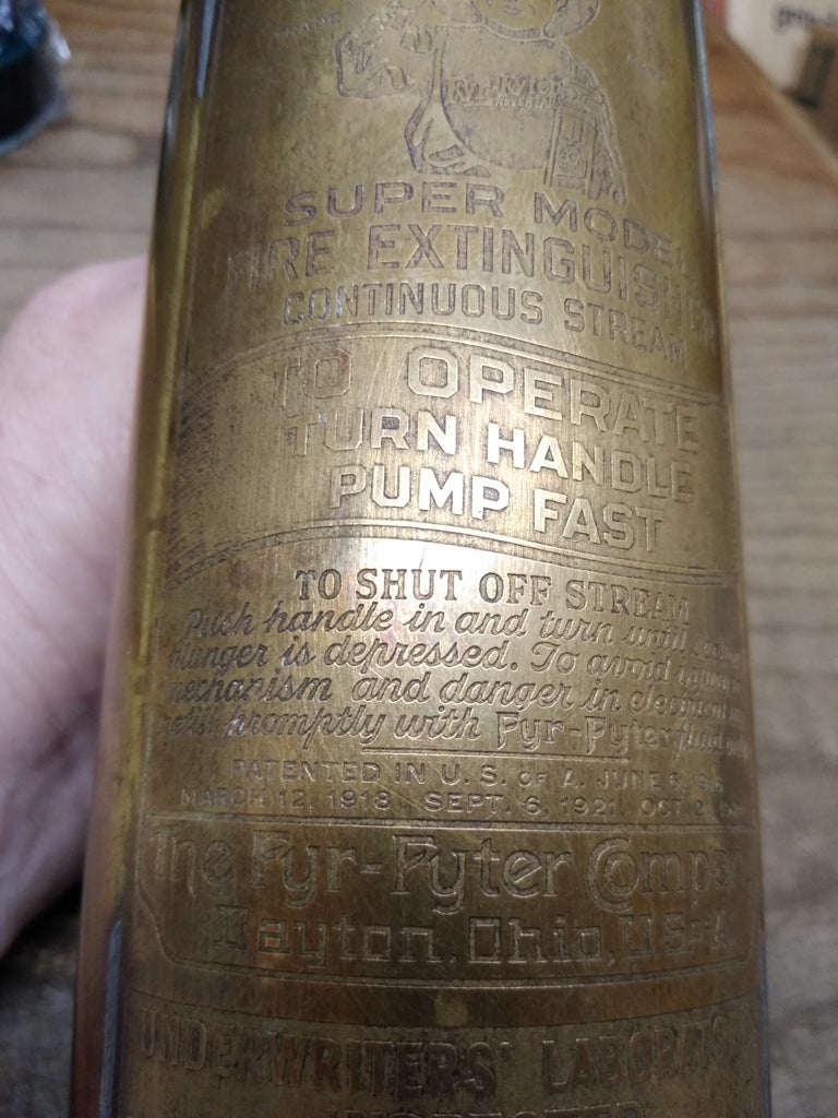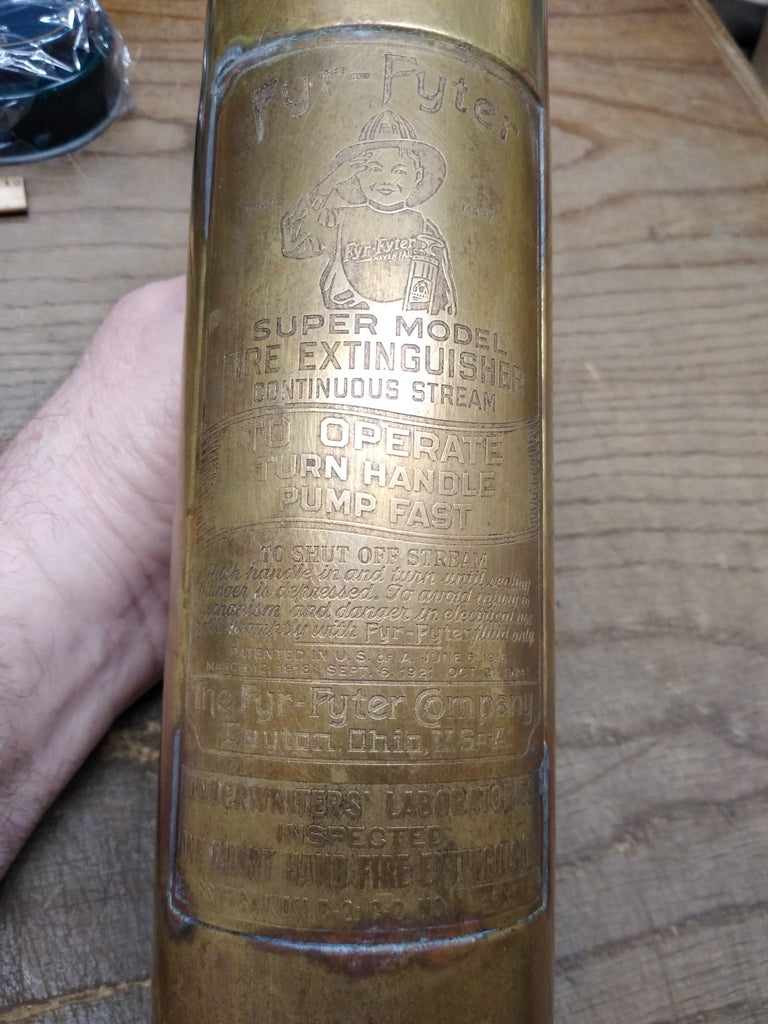 ***PLEASE LOOK AT ALL THE PICTURES AND ASK QUESTIONS BEFORE BIDDING*** This is a Vintage Antique Brass Fyr Fyter Co Super Model Fire Extinguisher Continuous Stream w/Bracket! *** The pictures are a substantial part of the description so please examine all the photos and contact me if you have any questions. We will be happy to save you shipping costs by picking this up at our shop. Thank You 080725- RK-12