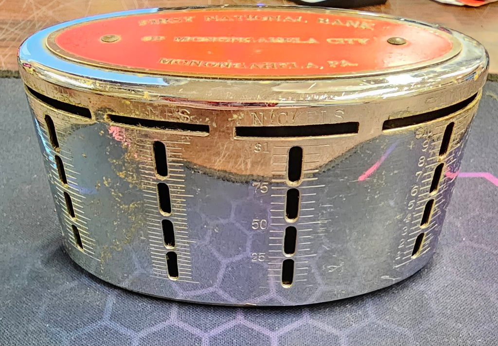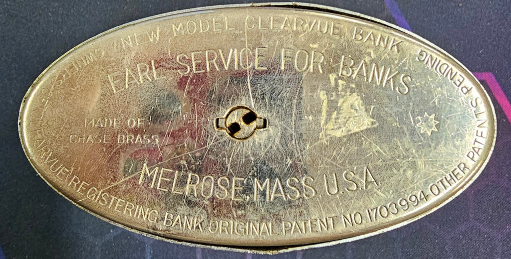 VTG Brass New Model Clearvue First National Bank Collectible Still Coin Bank
