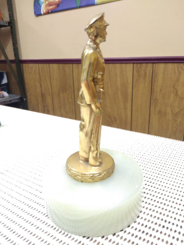 VTG Brass Soldier Sculpture Marble Base Desk Top Paperweight Military Decorative