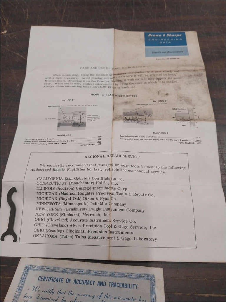 Vtg Brown & Sharpe 2-3 Micrometer Slant/Line #599-30-6 Box Fixed Friction