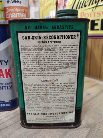 Vtg Car Skin Products Corporation Reconditioner Auto Cleaner Oil Gas Tin Can