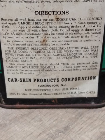 ***PLEASE LOOK AT ALL THE PICTURES AND ASK QUESTIONS BEFORE BIDDING*** This is a Vintage Car Skin Products Corporation Reconditioner Auto Cleaner 1 Pint Can.  ***Selling as pictured. The pictures are a substantial part of the description so please examine all the photos and contact me if you have any questions. We will be happy to save you shipping costs by picking this up at our shop. Thanks for looking.  040924- RK-03