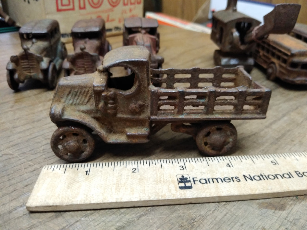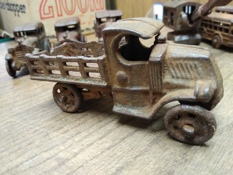 This is a Vintage Cast Iron C Cab Stake Bed Truck Toy AC Williams Arcade? 5" Artillery Wheels! ****** The pictures are a substantial part of the description so please examine all the photos and contact me if you have any questions. We will be happy to save you shipping costs by picking this up at our shop. Thanks for looking. 113023- RK-04