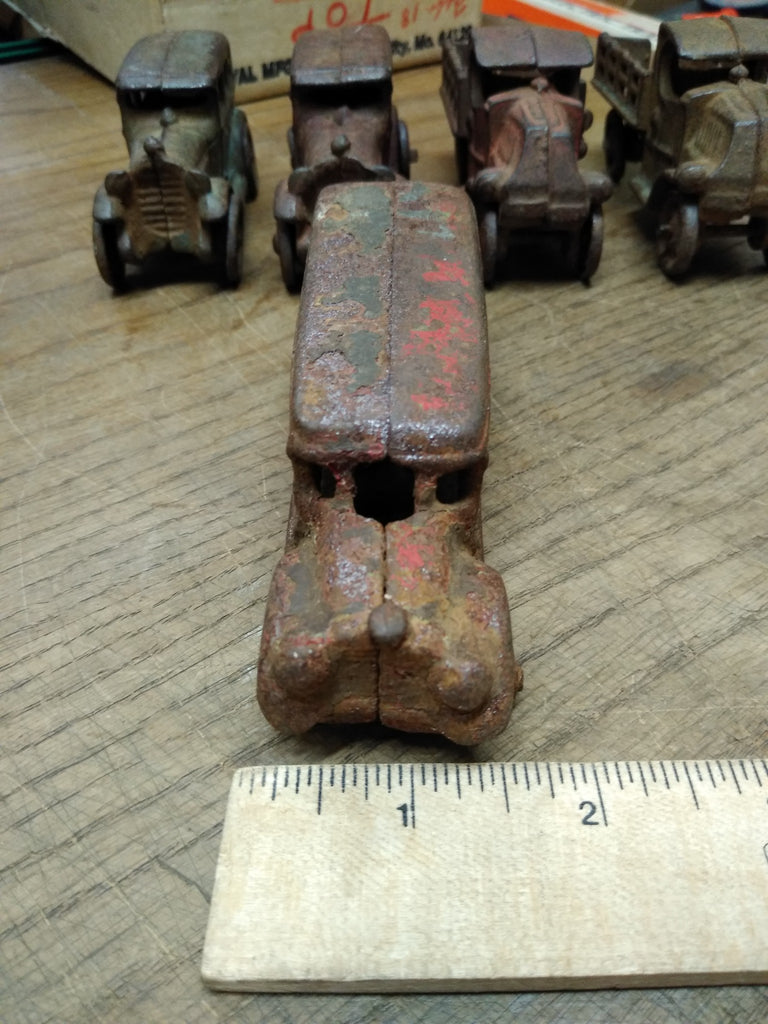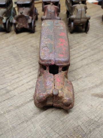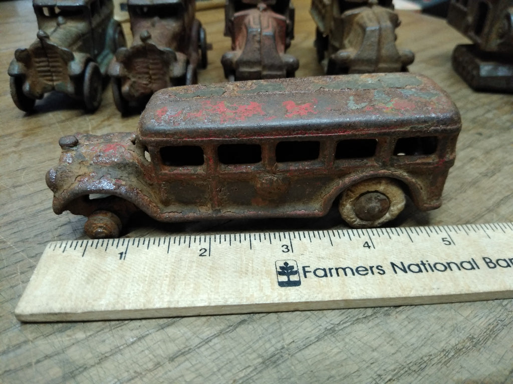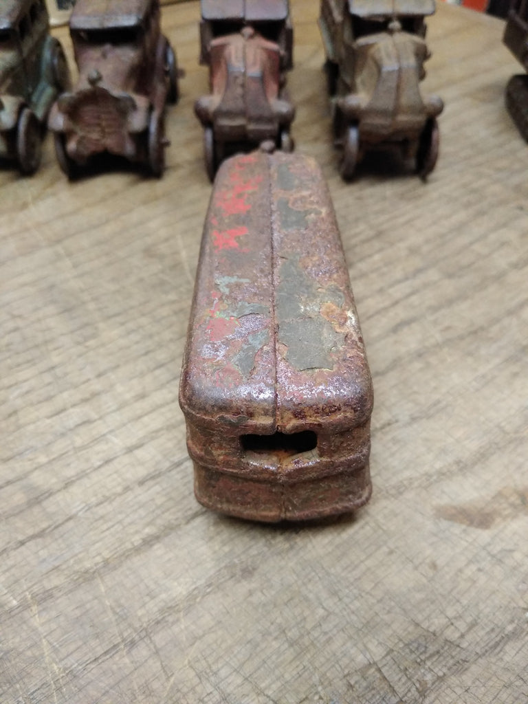 This is a Vintage Cast Iron Taxi Limousine Bus Toy Hubley Arcade AC Williams Dent? 5 inches, White rubber tires. ****** The pictures are a substantial part of the description so please examine all the photos and contact me if you have any questions. We will be happy to save you shipping costs by picking this up at our shop. Thanks for looking.  113023- RK-03