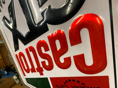 Vtg Castrol Gtx Embossed Tin Display Sign 23x18 OIL Gas Service Station Garage