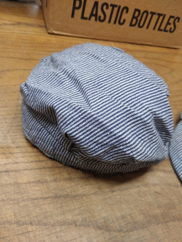 This is a Childrens Railroad Engineer Style Blue & White Striped Cap in Good Condition.