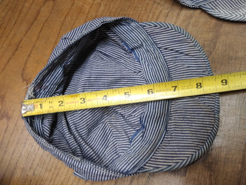 Vtg Childrens Railroad Engineer Style Blue & White Striped Cap Hat Youth Kids