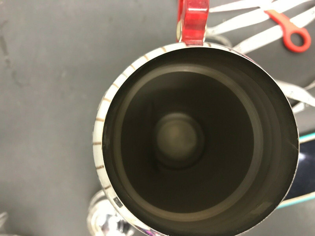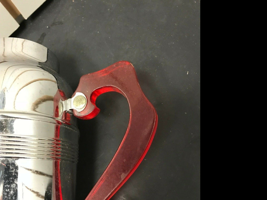 VTG CHROME COCKTAIL SHAKER RED LUCITE HANDLE SPOUT BARWARE MOVIE PROP TAVERN BAR