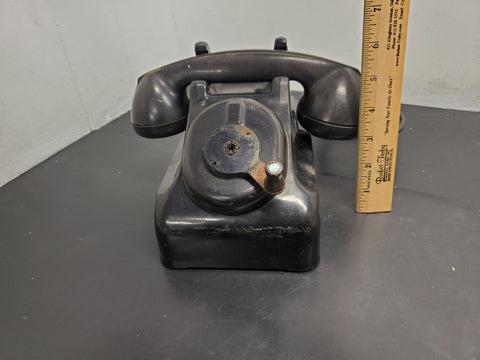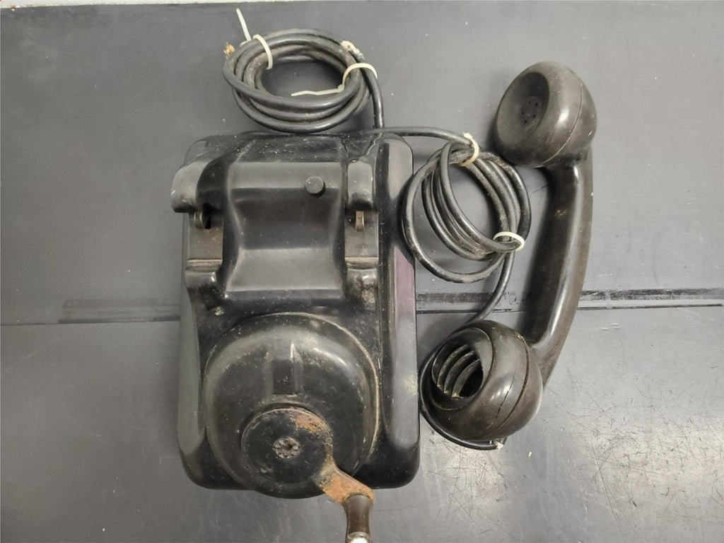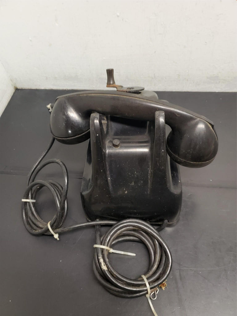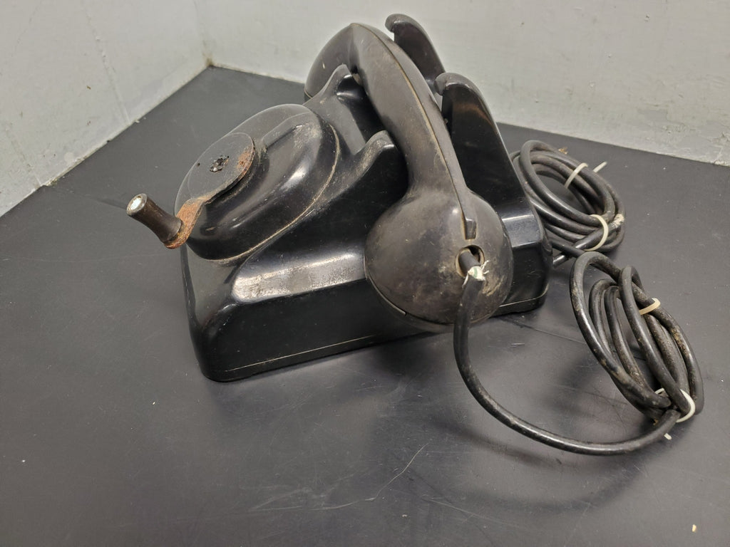 Vtg Circa 1930's Black Leich Bakelite Crank Telephone Desktop Office Collectible
