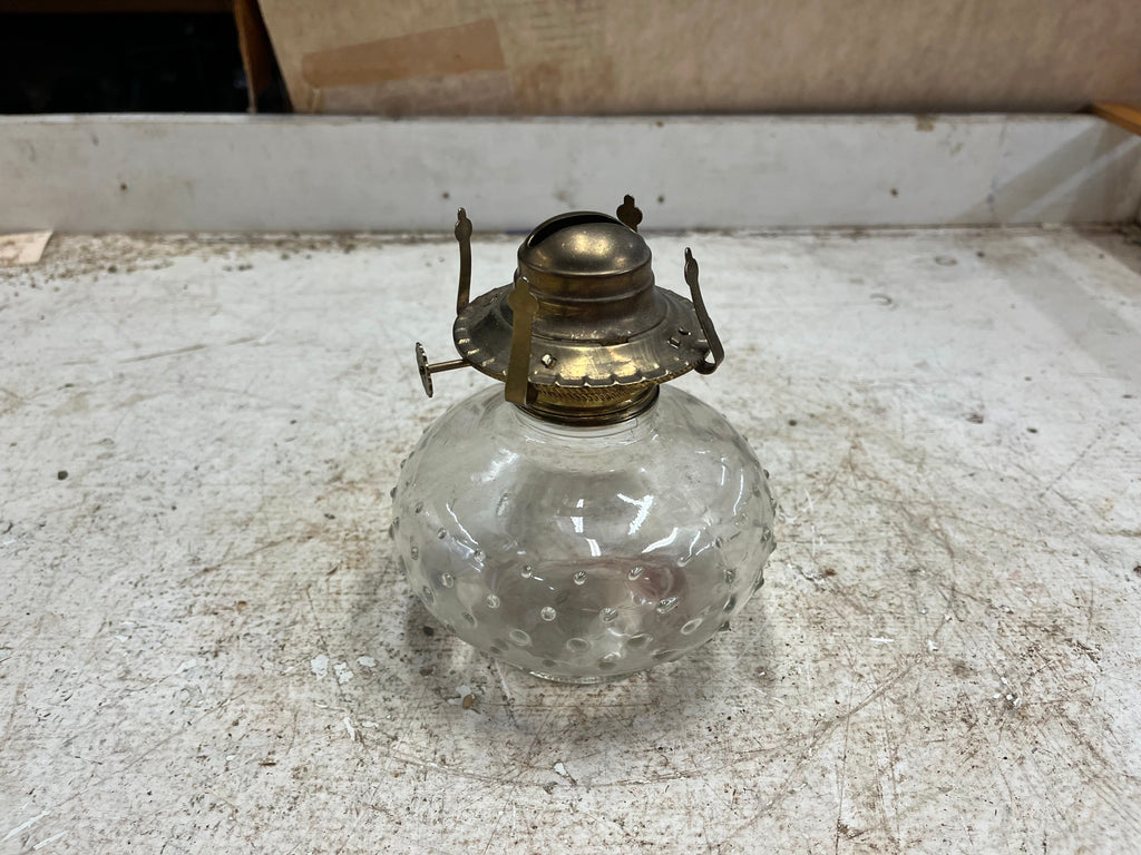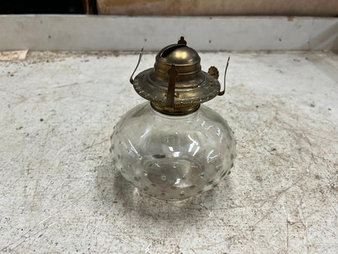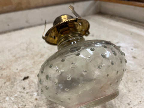 vtg clear hobnail farm lamplight brass oil lamp missing top