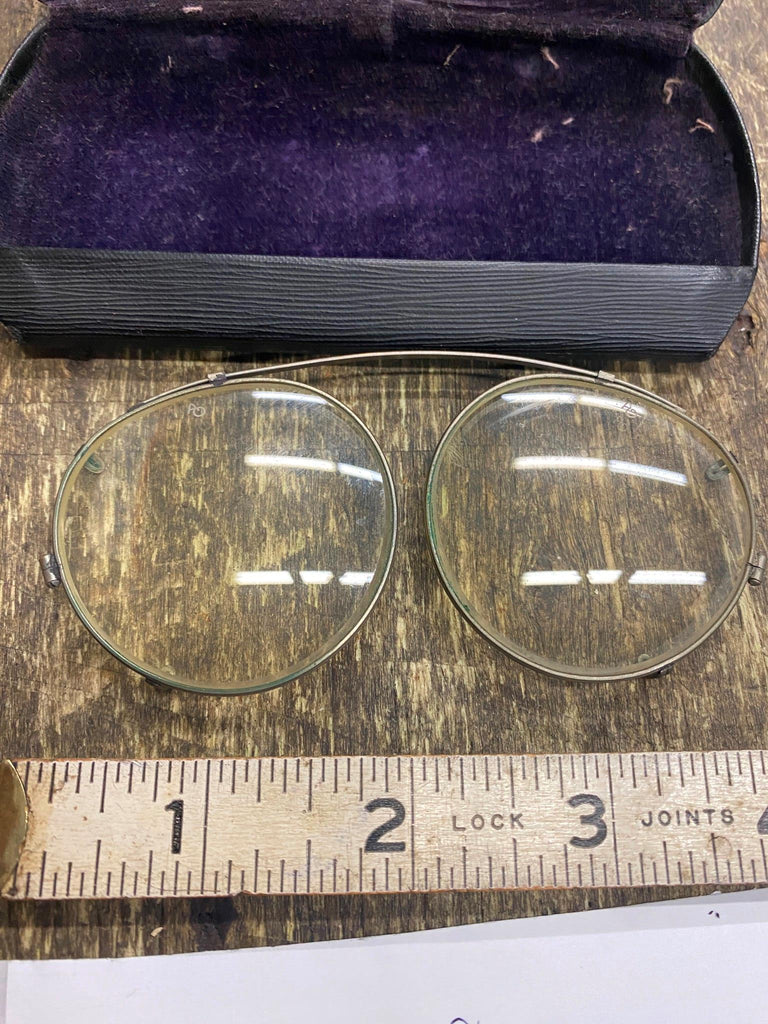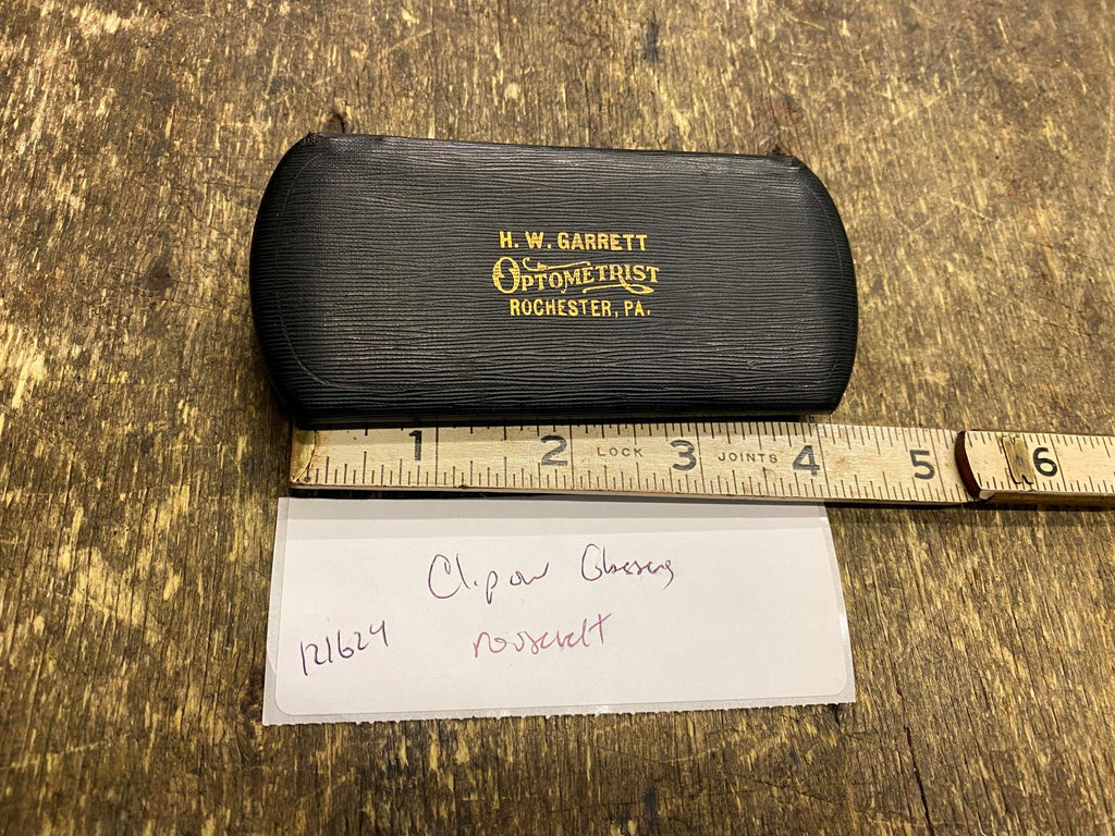 Vtg Clip ON Glasses with Case. Silver. Theodore Roosevelt. H.W. Garrett optometrist. Rochester, PA.
