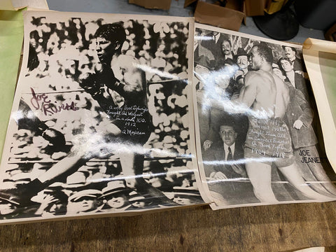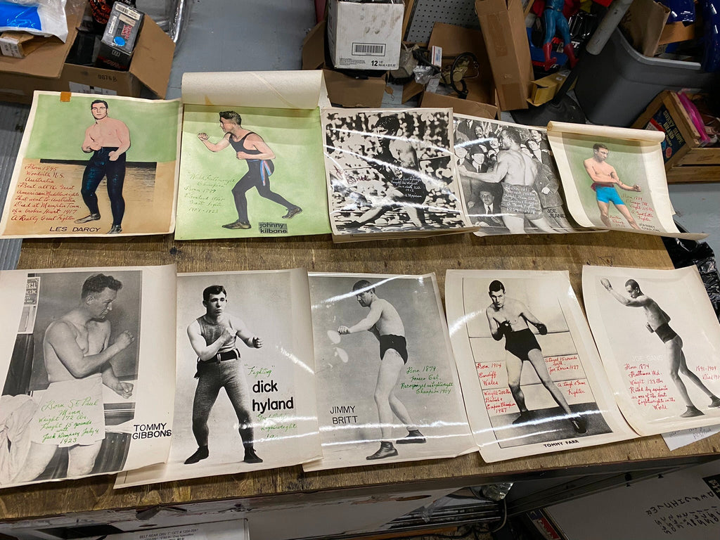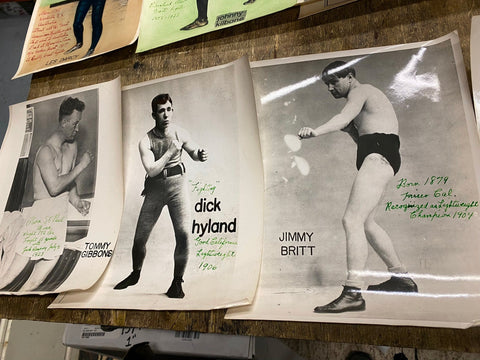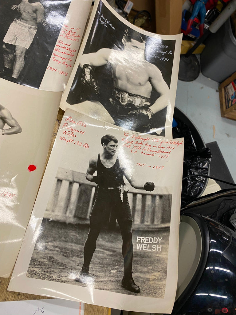 Here's a Great Collection of Pictures, some signed, a lot of personal details about the boxers, told these were from the grandson of Professor Mike Donovan, he was in ww2 as a boxer, and his dad was a famous boxer also . Think the collection would be worth more split up but it's just a great treasure as it sits!!! Can tell he really followed the boxing world back into the late 1800's had a really good time looking up some of the boxer's history, achievements, and personal notes on each picture........ priceless to the avid collector, I bought them because my dad was a water boy back in the 1940's he still has some old gloves from a couple of fighters that fought in Pgh/New Kensington area..... (of course we were just dumb kids & we used to put them on & punch each other with them, couldn't figure out why he would get so mad about some old gloves.......hmmm.....nice asst of pictures, articles etc.... can only put so many pictures on here...... can forward a bunch of pictures to give a better idea of what we are selling here.
