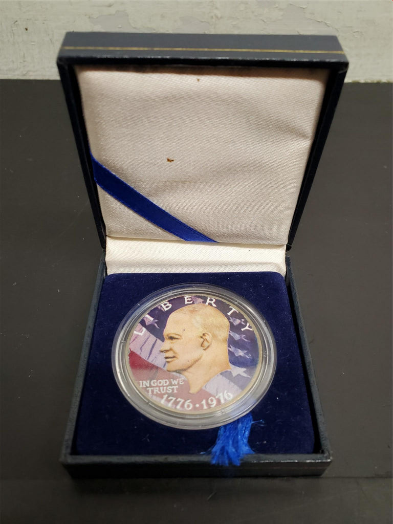 Vtg Colorized President Ike Eisenhower 1776-1976 Dollar Ornate Collectible Coin