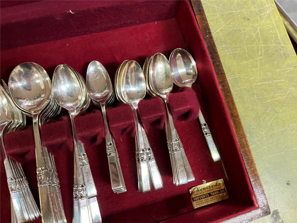 VTG Community finest Silverplate Silverware Set in Wooden Box