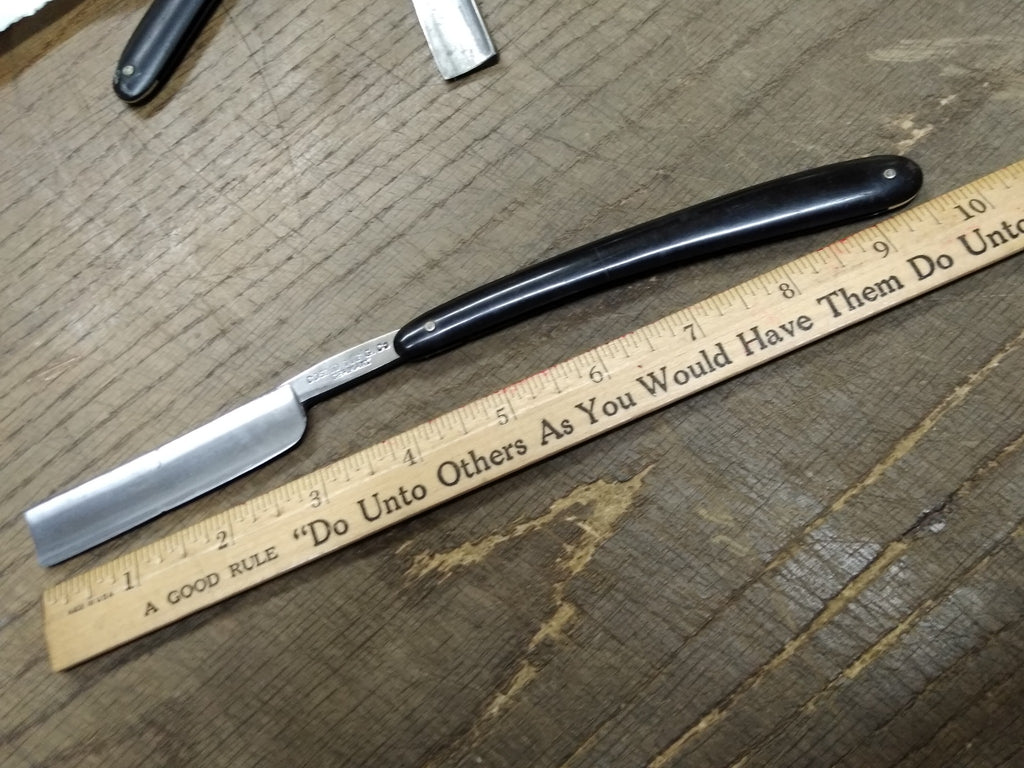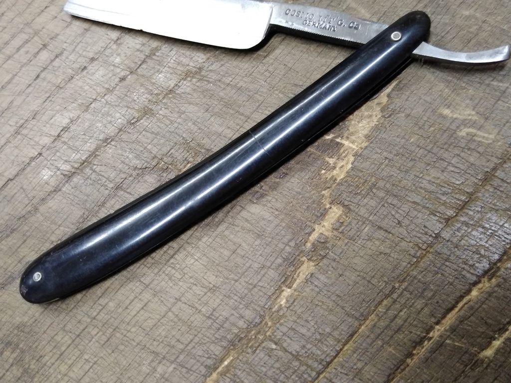 ***PLEASE LOOK AT ALL THE PICTURES AND ASK QUESTIONS BEFORE BIDDING*** This is a Vintage COSMO MFG Co Germany Straight Razor Hollow Ground with Jimps!*** The pictures are a substantial part of the description so please examine all the photos and contact me if you have any questions. We will be happy to save you shipping costs by picking this up at our shop. Thank You 072925- RK-06