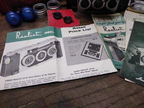 Vintage David White Co. Stereo Realist Film Camera f/3.5 Lens, Shutter Works, Made In The USA, with Flash, Leather Case and Carry Case, Lots of Extra Items, Untested Condition, Looks Good!*** *** Selling as pictured as is. The pictures are a substantial part of the description so please examine all the photos and contact me if you have any questions. We will be happy to save you shipping costs by picking this up at our shop in Butler, Pa. Thanks for looking. 062024- RK-07
