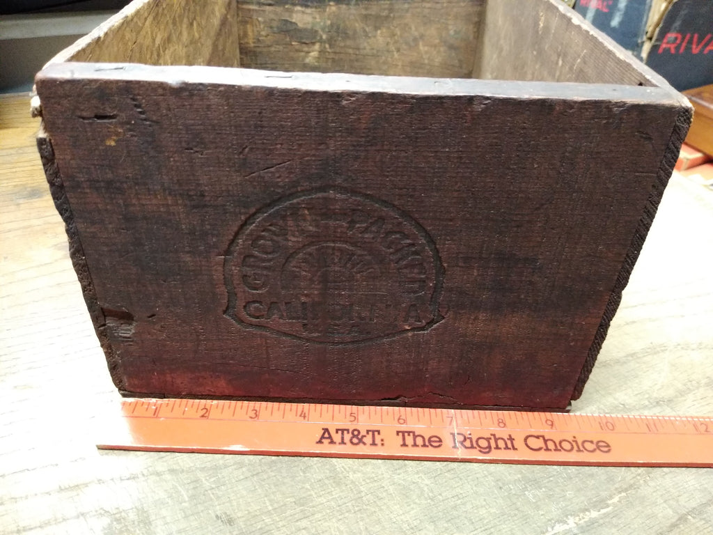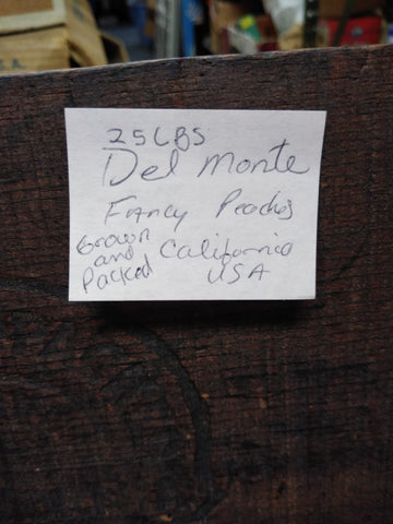 ***PLEASE LOOK AT ALL THE PICTURES AND ASK QUESTIONS BEFORE BIDDING*** This is a Vintage Del Monte Wooden 25 Lbs Fancy Peach Fruit Crate 9.5" x 15.5" California USA with Nice Patina and in Good Shape! *** The pictures are a substantial part of the description so please examine all the photos and contact me if you have any questions. We will be happy to save you shipping costs by picking this up at our shop. Thank You 060325- RK-01