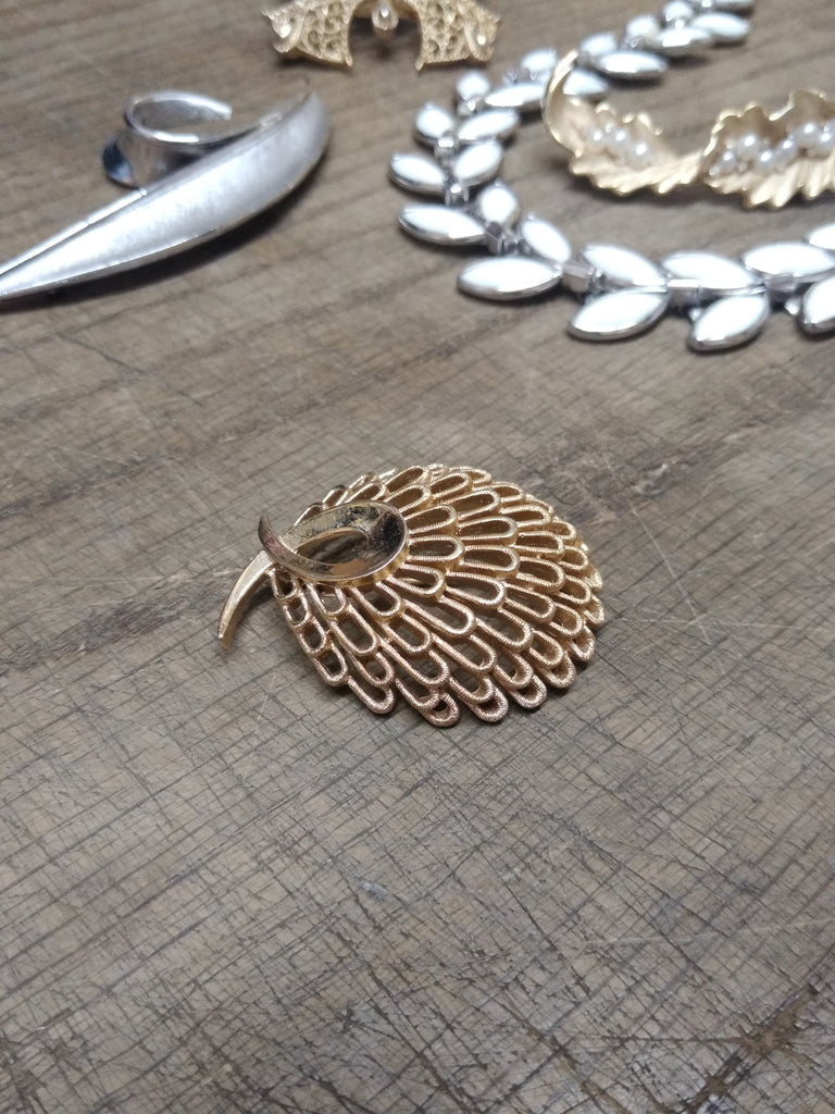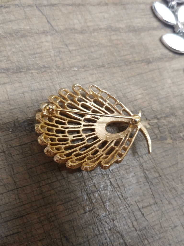 Vtg Designer Signed Crown Trifari Gold Tone Brooch 1.5 Inch Nice