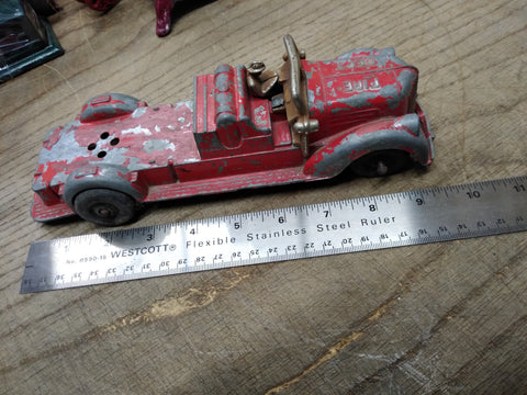 Vtg Die Cast Hubley Kiddie Toy #473 Fire Ladder Truck with Driver Made In USA!