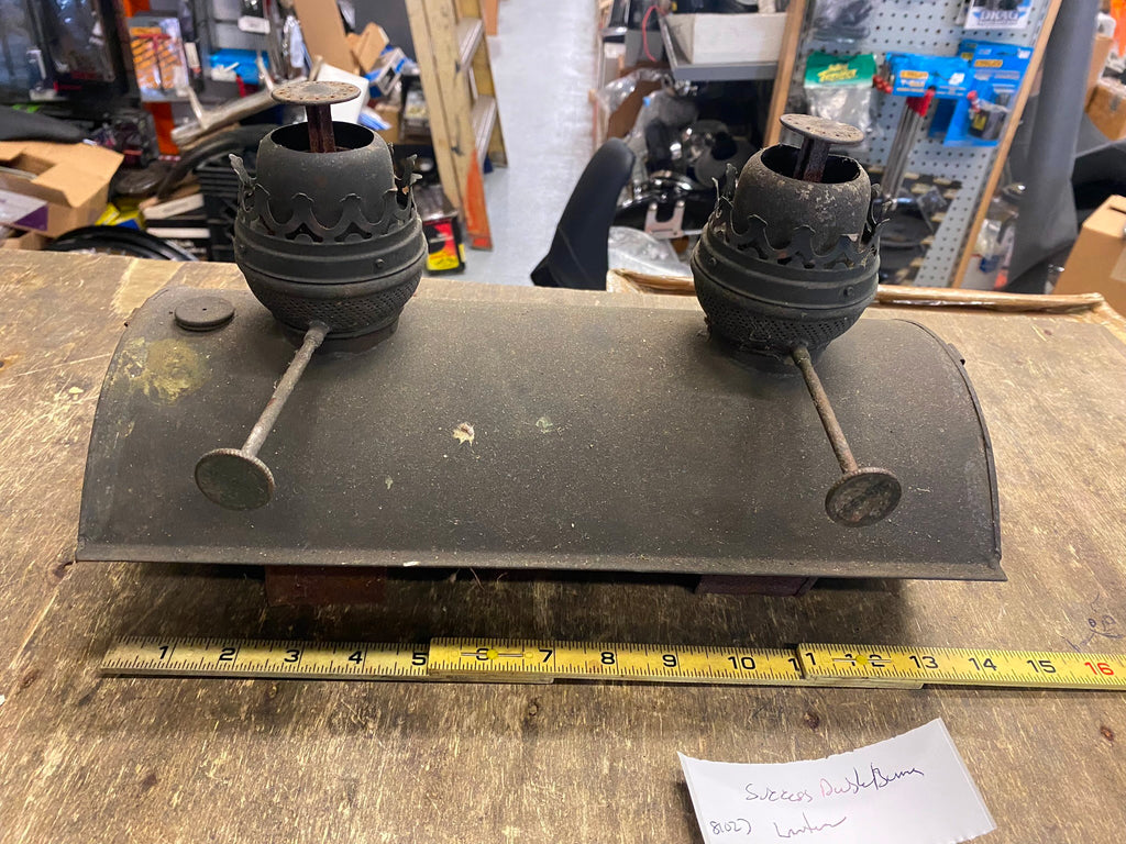 Vtg Double Oil Lamp Success Burner Lantern Antique. One side knob moves it up & down fine other one is seized. Cant find any info on this one. If you know send us some info on it.....