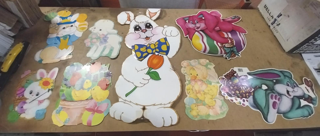 Vtg Easter Hanging Decorations Lot of 8 Bunny Rabbit Decor Peeps Holiday Spring