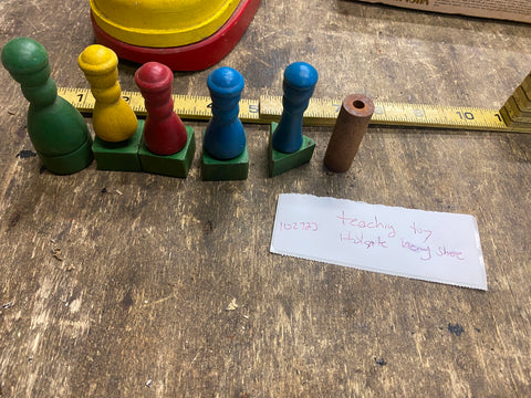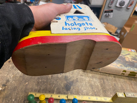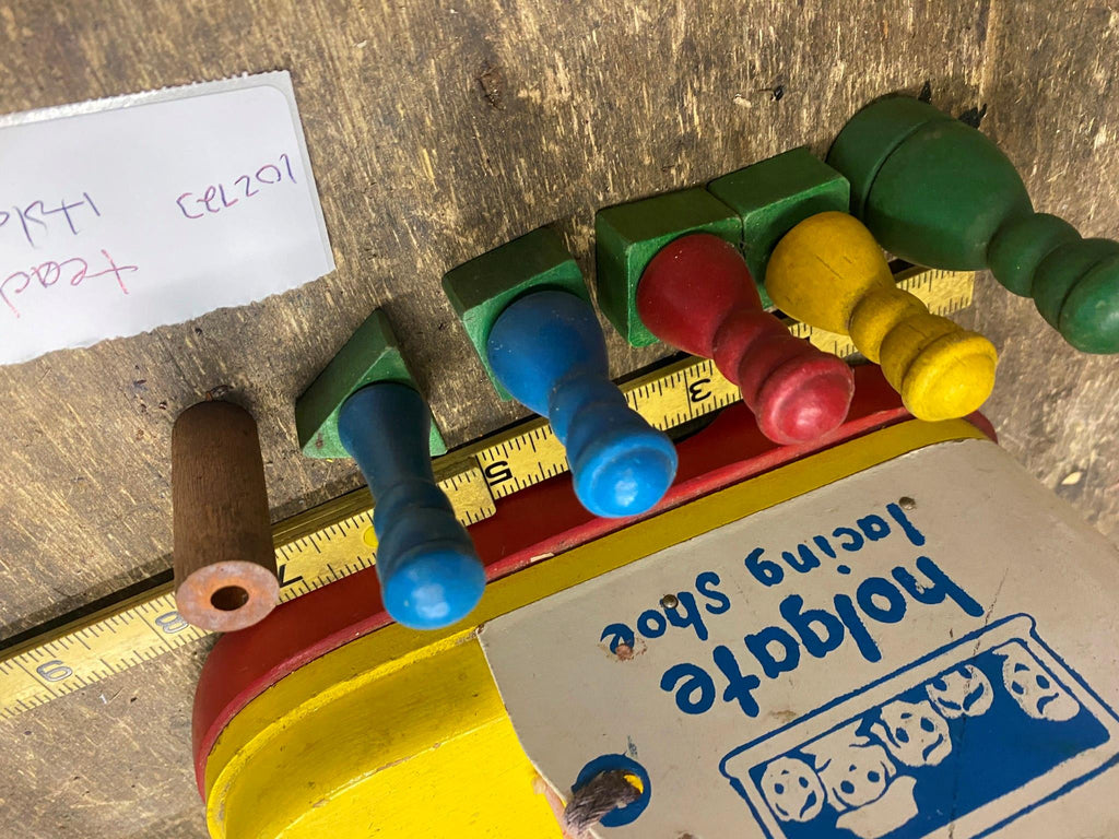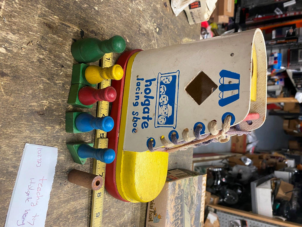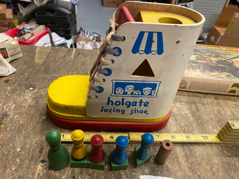 Vtg Educational Toy Shoe Boot teach kids how to lace Square Triangle Blocks Holg