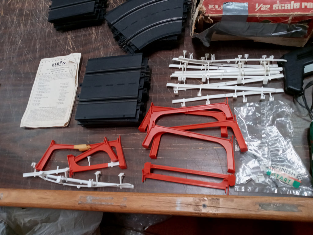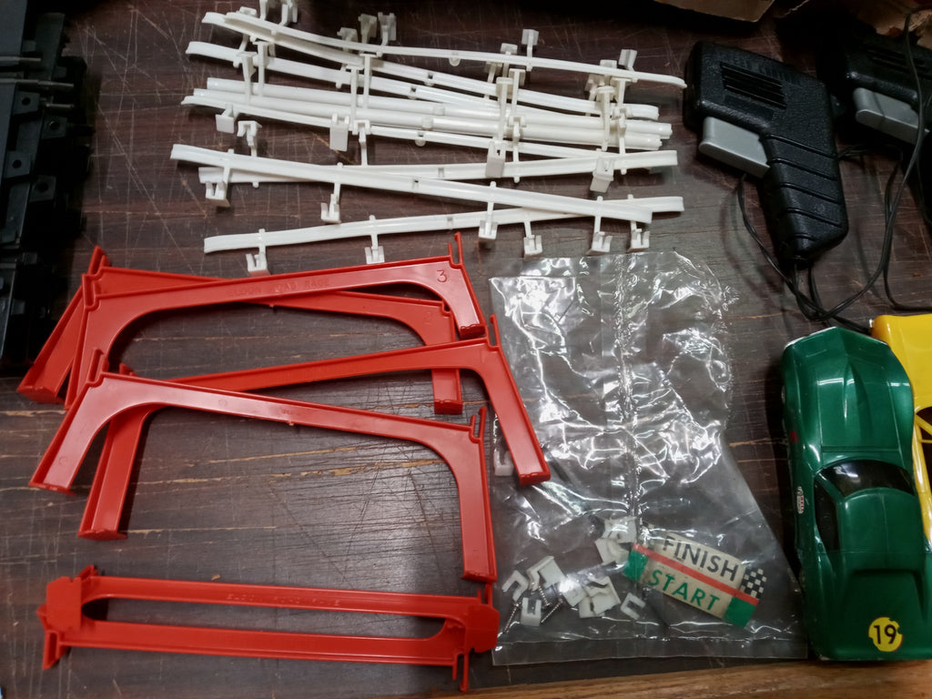 Some of the pieces are broken for the sides of the track could be glued together I put all the loose pieces in a bag in the box.