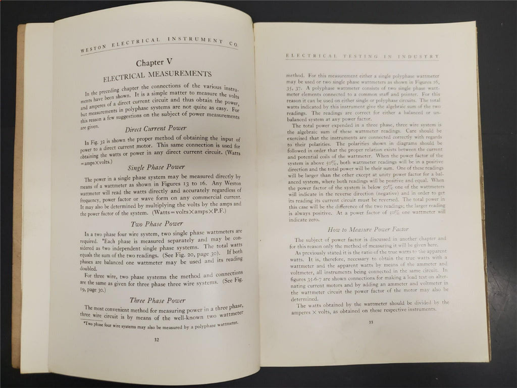 Vtg Electrical Testing in Industry Book Weston Electrical Instrument Collectible
