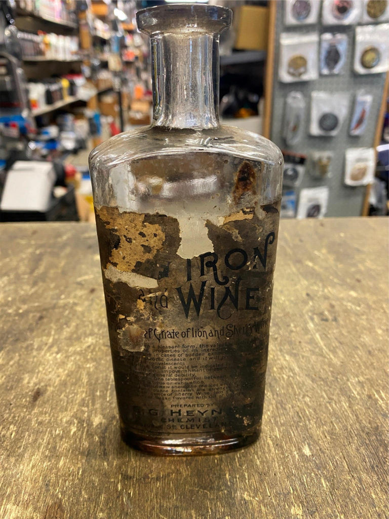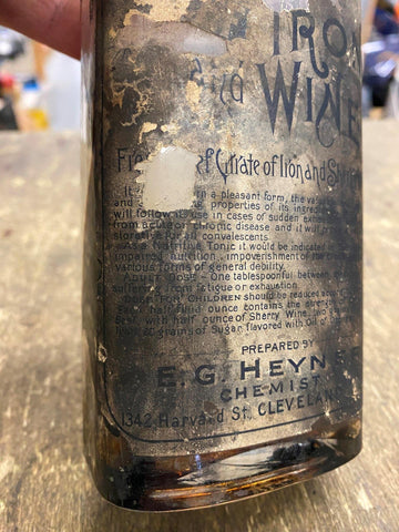 Vtg Elixor Bottle Glass 1900's Medicine Iron Wine Heyner Cleveland oh Quack Antique. Really cool piece of history, old quack medicine bottle, guessing late 1800's early 1900's  Medicine man! Couldnt find anything on it