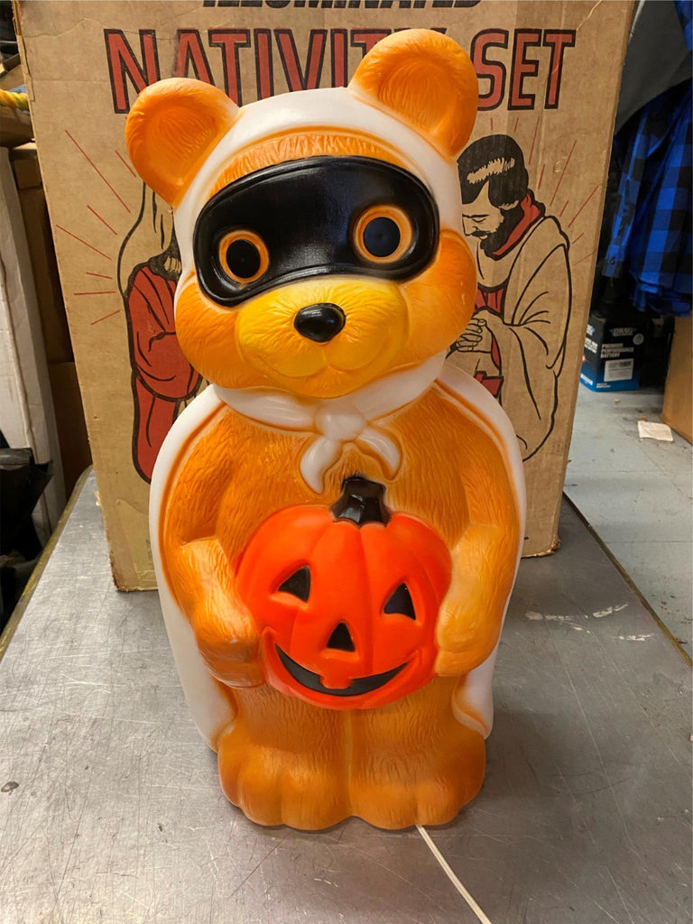 Vtg Empire Bandit Bear Mask Blow Mold Halloween Decor 24" Jack o lantern