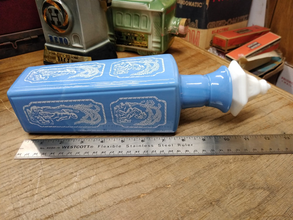 Vtg EMPTY Jim Beam 1965 Kentucky Bourbon Decanter Blue Milk Glass Shepard & Dog