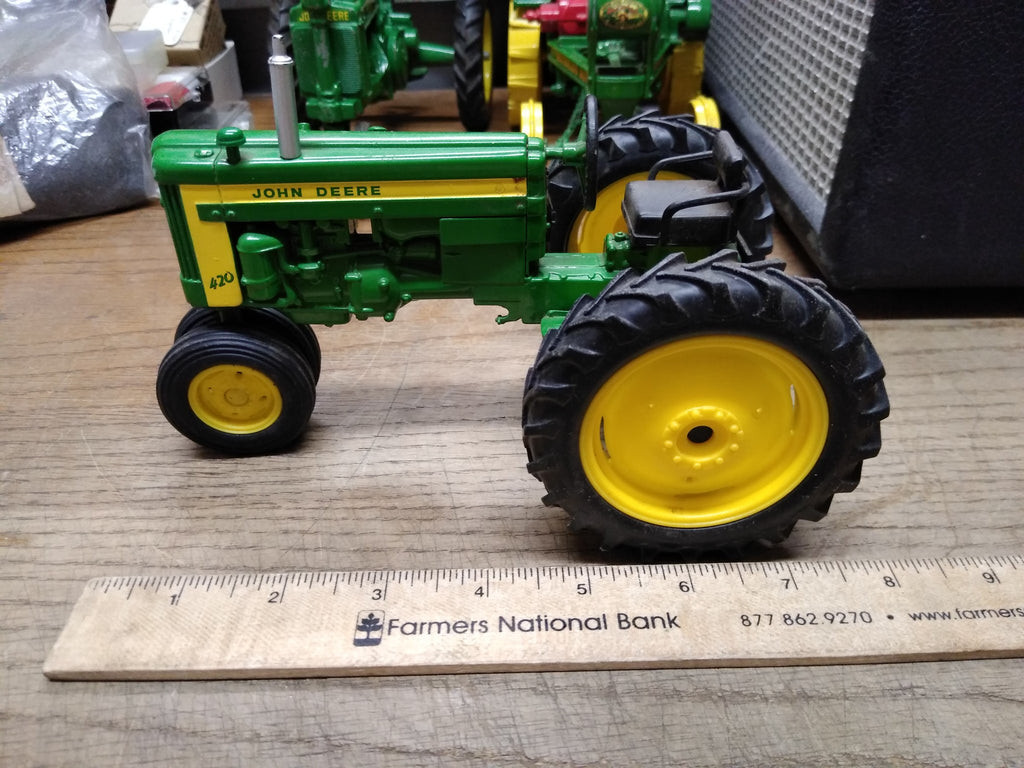 ***PLEASE LOOK AT ALL THE PICTURES AND ASK QUESTIONS BEFORE BIDDING*** This is a Vintage John Deere Diecast Metal Farm Tractor Model 420 Steering Works USA in Good Shape! *** The pictures are a substantial part of the description so please examine all the photos and contact me if you have any questions. We will be happy to save you shipping costs by picking this up at our shop. Thank You 060325- RK-04