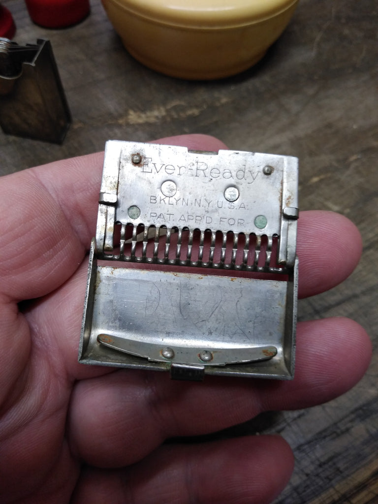 ***PLEASE LOOK AT ALL THE PICTURES AND ASK QUESTIONS BEFORE BIDDING*** Vintage Ever Ready 3 Pc Travel Safety Razor Celluloid Case New York USA Nice Shape!***