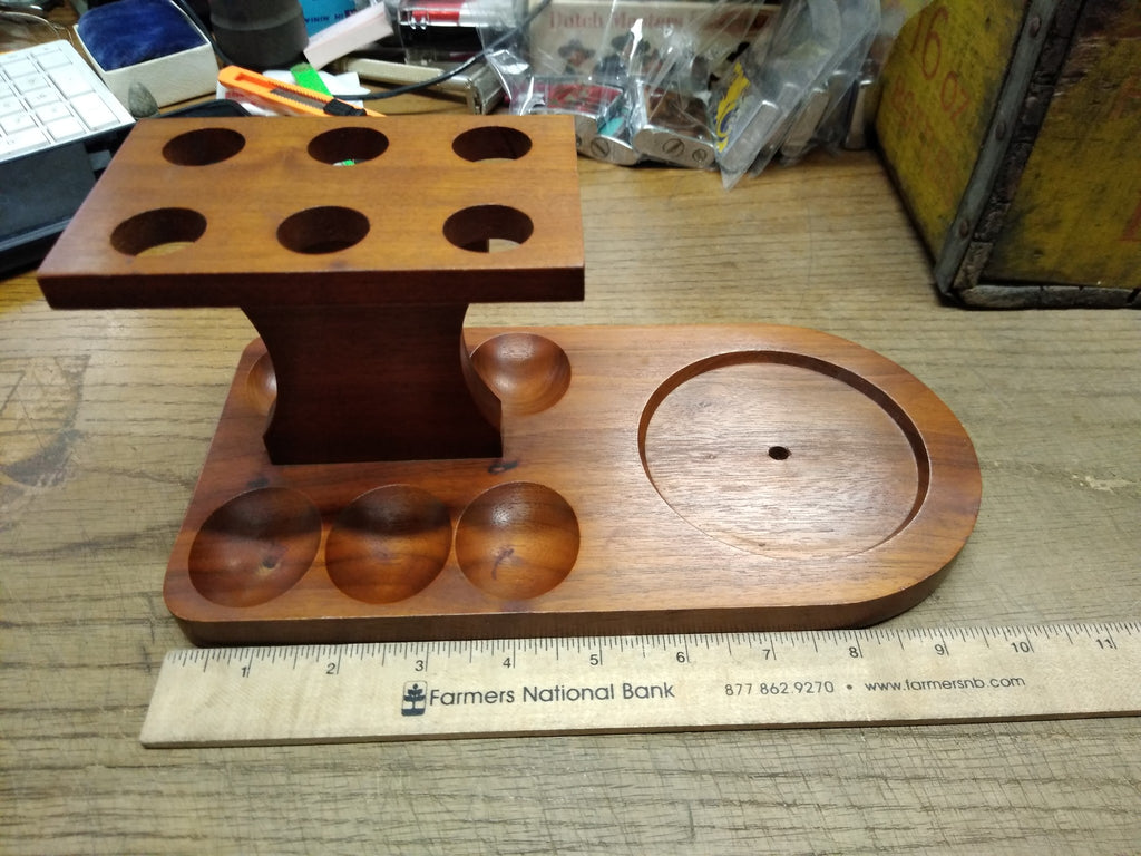 This is a Vintage Fairfax Walnut 6 Smoking Tobacco Pipe Stand Rack Holder Nice Shape!!******Selling as pictured. The pictures are a substantial part of the description so please examine all the photos and contact me if you have any questions. We will be happy to save you shipping costs by picking this up at our shop. Thanks for looking.  021324- RK-07