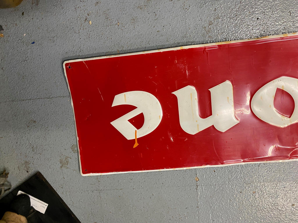Vtg Firestone Embossed Tin Display Sign 72x14 OIL Gas Service Station Garage Man Cave some wear & tear Great piece for the man cave!!!