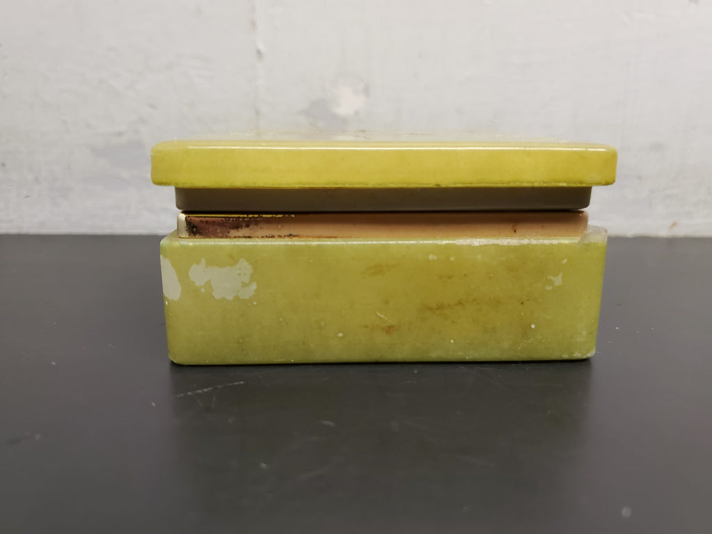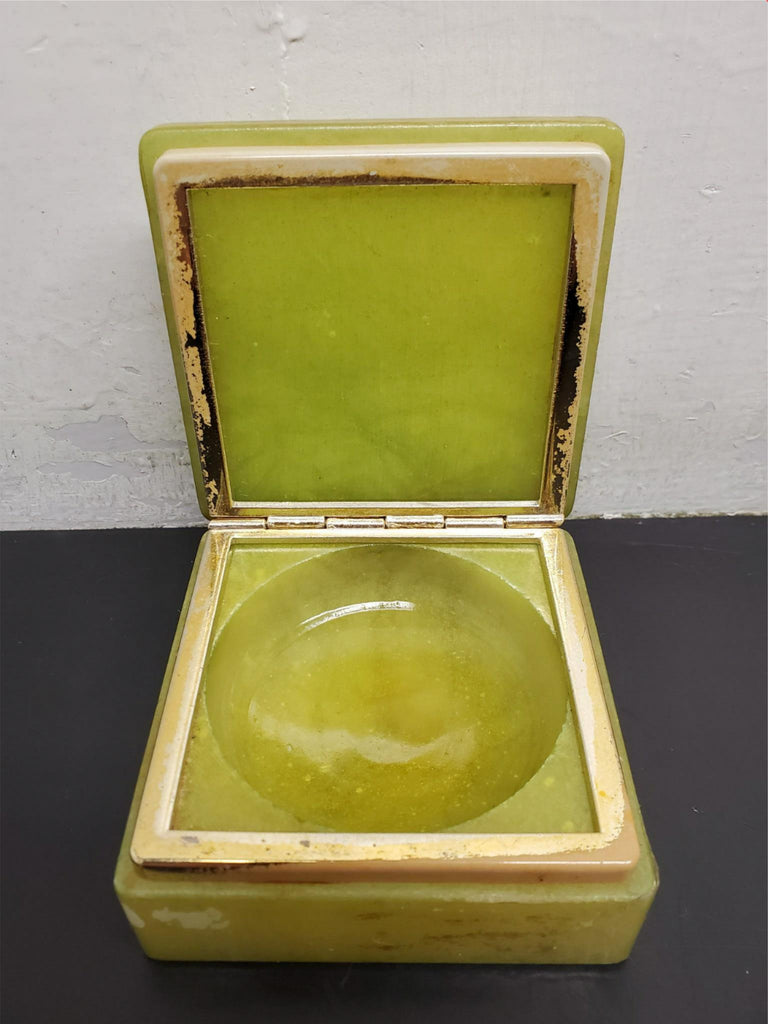 Vtg Flori Light Green Ornate Flower Decorated Heavy Jewelry Box Collectible Nice