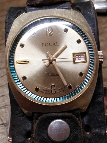 ***PLEASE LOOK AT ALL THE PICTURES AND ASK QUESTIONS BEFORE BUYING*** Vintage Focal De Luxe Swiss Mechanical Wrist Watch w/1970's Leather Strap, This Watch is Working Now, but keep in mind it is old and unserviced!