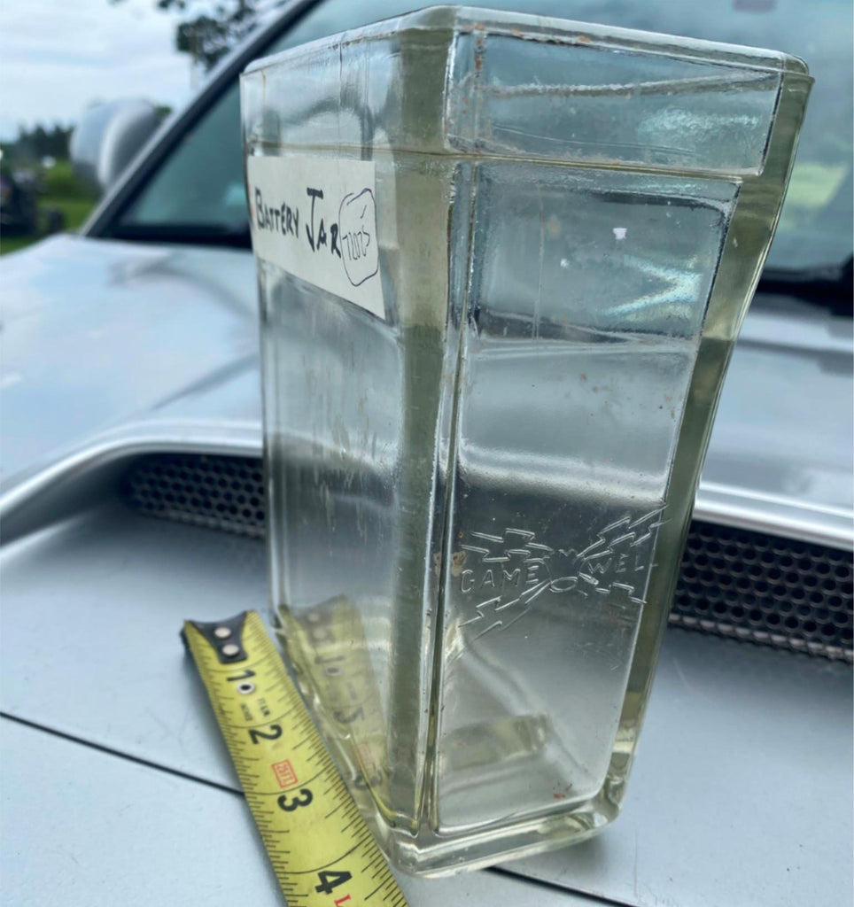 Vtg Game Well Early Fire Alarm Radio Glass Battery Jar 20's Antique Electronics! this is what the early batteries came in pretty cool conversation piece no chips or cracks embossed logo on sides!