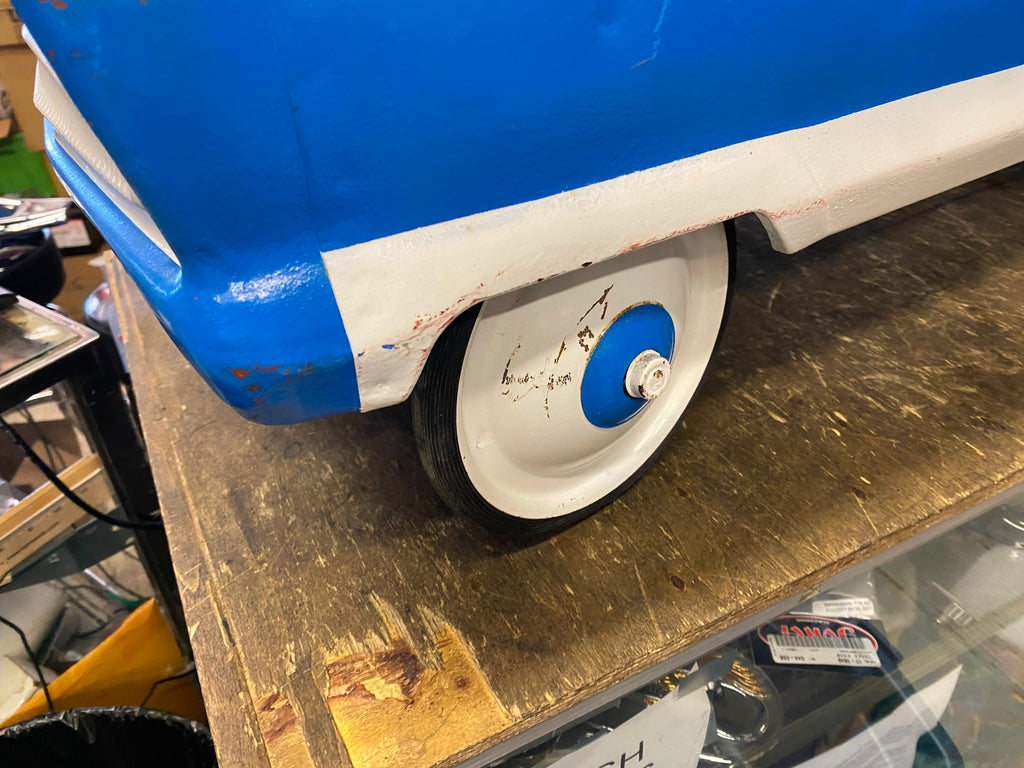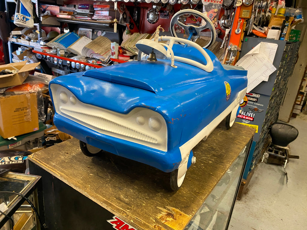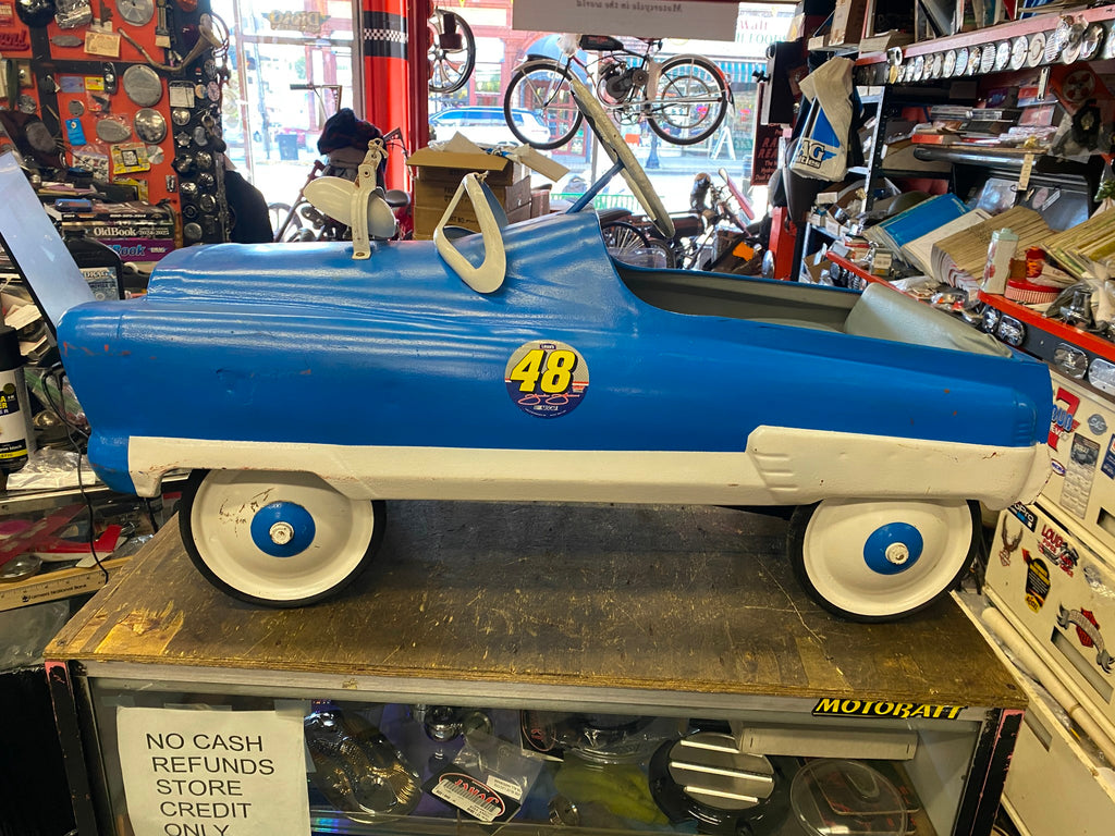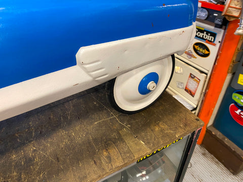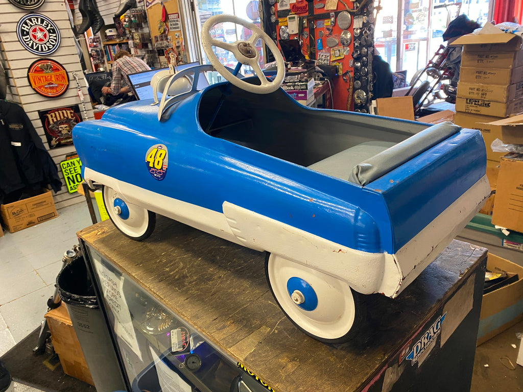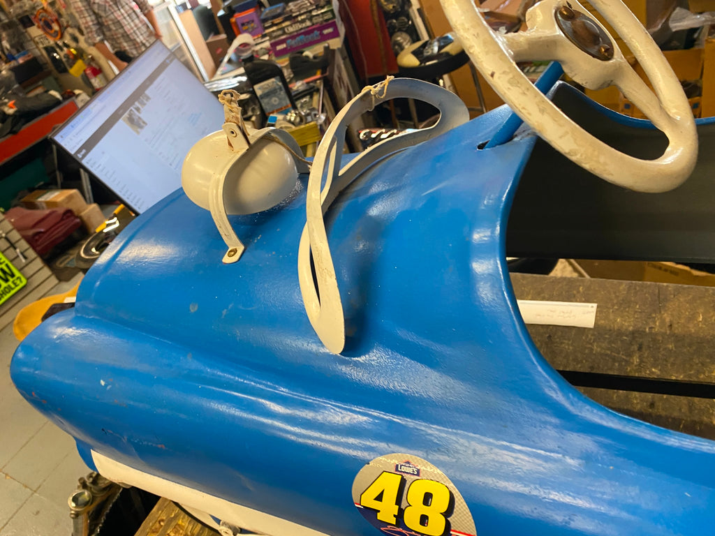 Vtg Garton Pedal Car Police Fire Truck Old Resto 1950's Mark 5 Aeroflite Rare! someone semi restored it back in the 80's dont see alot of these! Literally all the bells & whistles..... had to say that..... upholstered seats, bell, windshield was gong to take the nacar stickers off but nice period touch leave that up to buyer would look great with some police or fire decals!! have some other pedal cars & tractors listed!