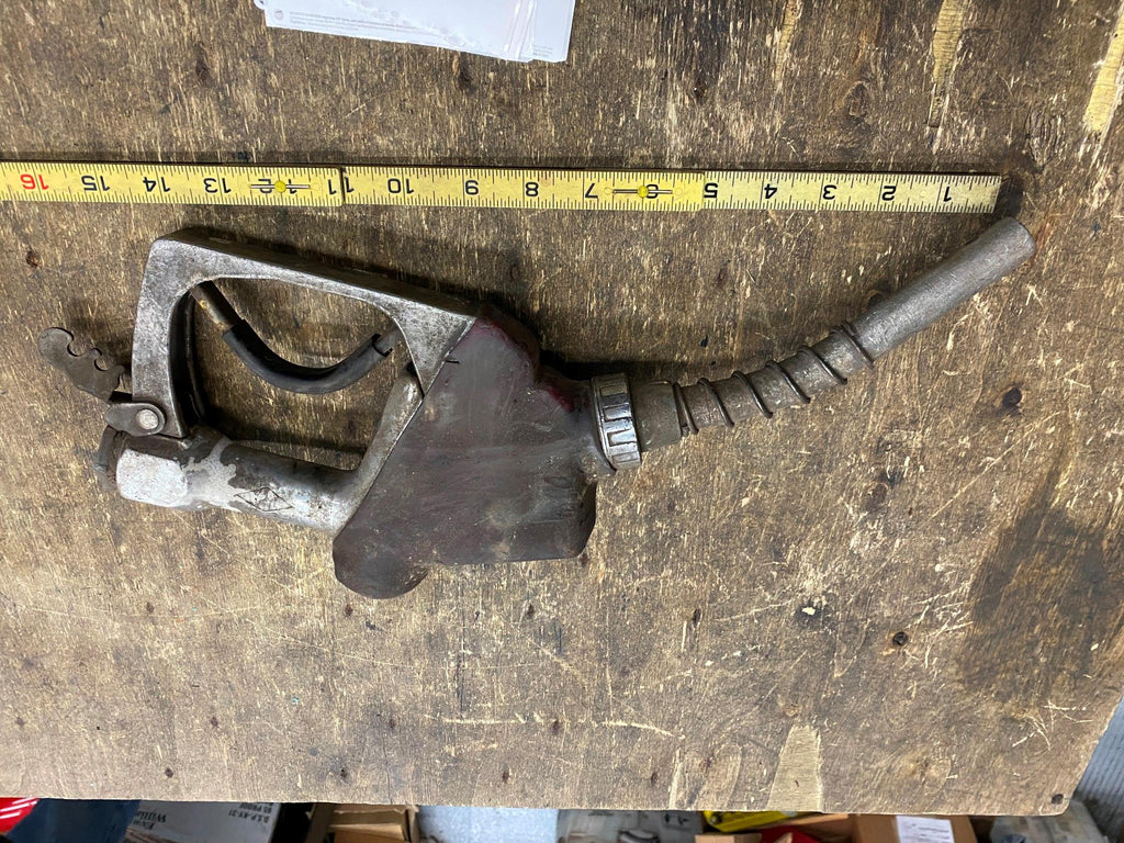 Vtg Gas Pump Handle Nozzle Alum Service Station Man Cave Petrol Display made a door handle out of one of them, thought it was creative..